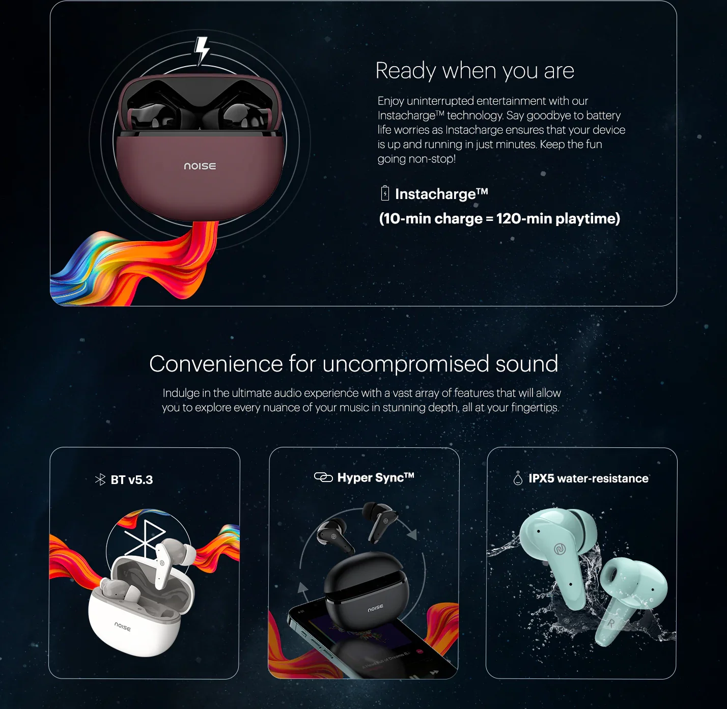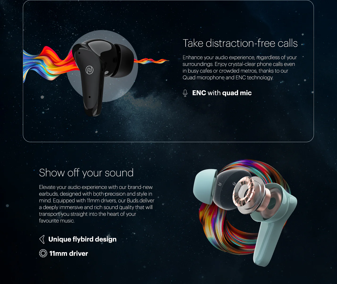 Calm White buds, Deep Wine, Matte Black, Serene Blue